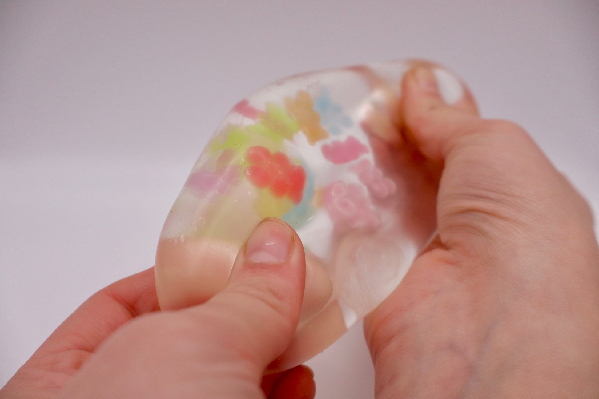 Filled with premium maltose, the Gummy Squeeze offers a slow-rising, ultra-satisfying squish you can stretch, squeeze, and mold. No matter how much you play, it always returns to its original shape. Inside, you’ll discover colourful bears suspended in the gel for added texture and a playful visual twist.